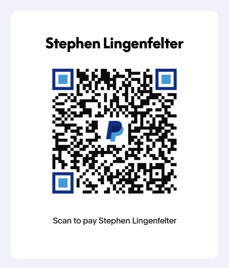 Donations can be sent through PayPal to s2lingenfelter@gmail.com or through the QR code.